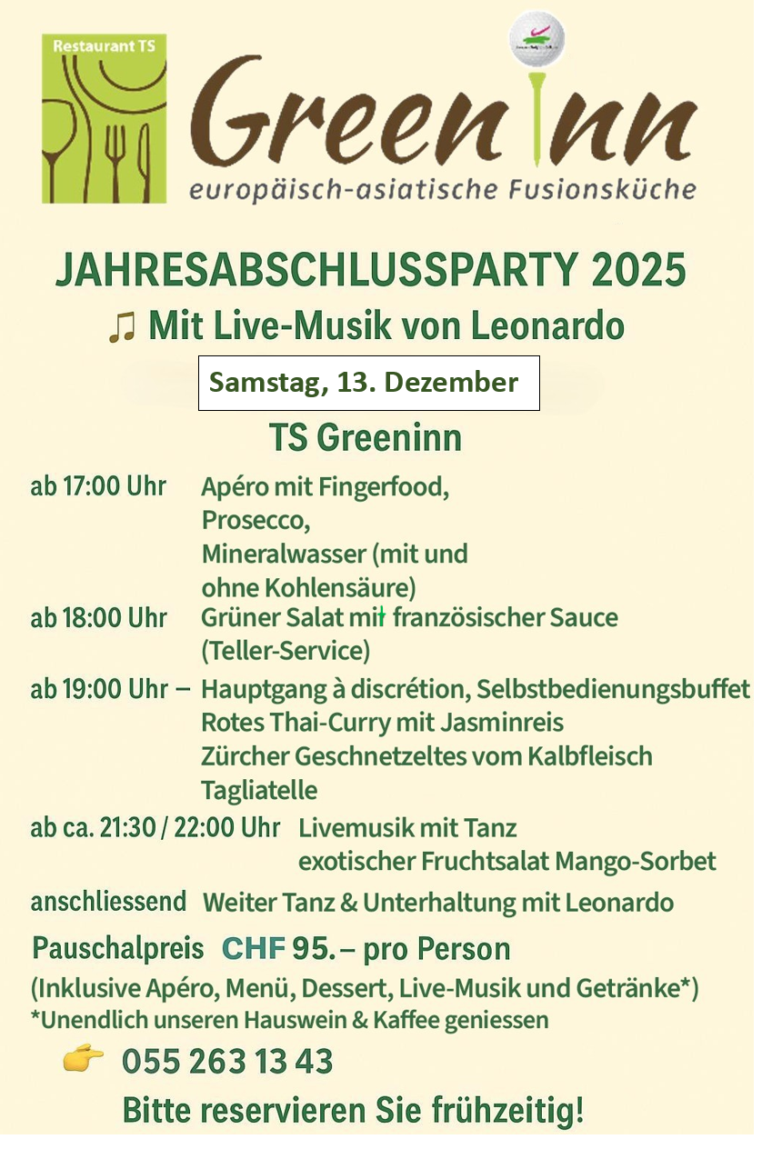 Ob ein Hochzeitsfest, eine Familienfeier, eine GV oder einen Firmenevent, bei uns sind Sie richtig. Im TS GreenInn verwöhnen wir Ihre Gäste kulinarisch. Im Sommer organisieren wir in unserem Garten Apéros und Grillabende.